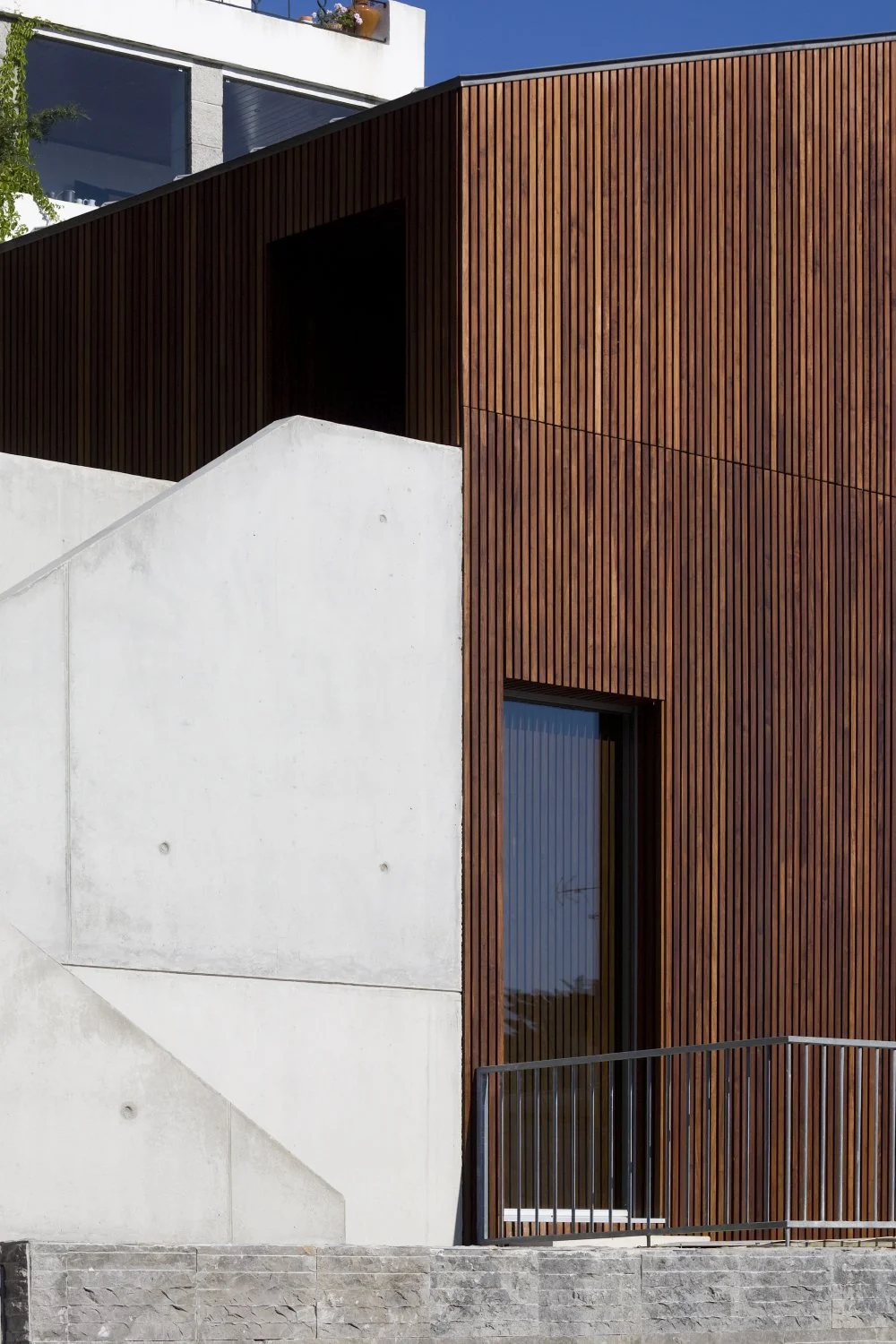 It’s about a weighting scale system. A parenting stretch on texture relation. Two intervenient in a material conversation. A balance intersection on limit and transgression, abled to redirect the communication to the street front, maintaining the existing garage doors - a wall built in it original foundation.